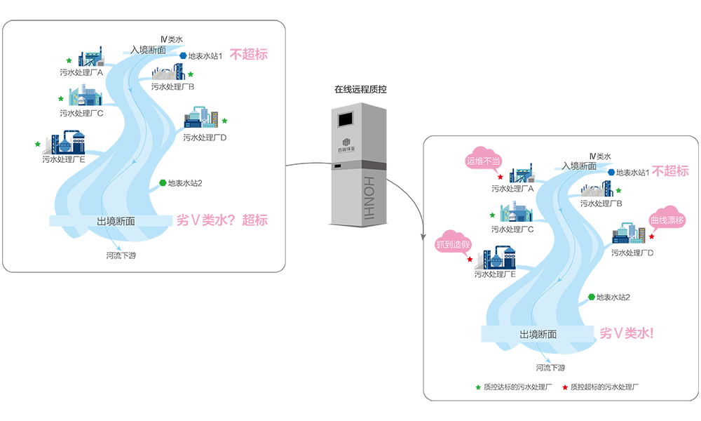 在線遠程質控系統作為在線監測設備的電子警察,用可溯源的國家標準物質,以獨特的外部質控方式實現高頻次的飛行檢查、盲樣核查,根治數據造假問題,實現監測數據的可信、可比、可用,改變在線監測數據僅用來作為參考的現狀。